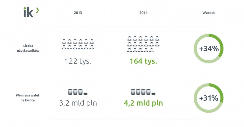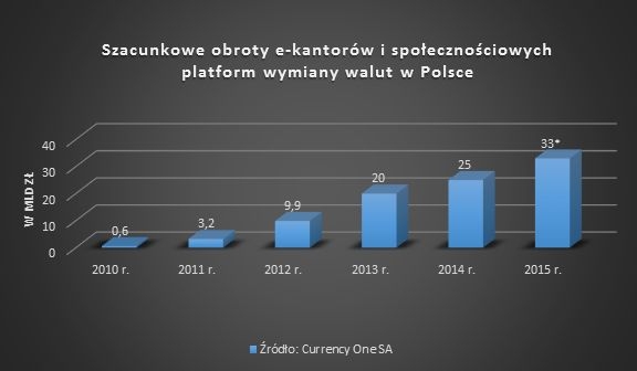 Currency One właściciel obydwu operatorów podsumowała 2014 r. Spółka szacuje, że obroty w sektorze e-wymiany walut wyniosły 25 mld zł i prognozuje, że tym roku wartość ta wzrośnie o kolejne 30%.